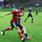 engen Verhältnissen auf dem Kunstrasenplatz klarzukommen. Viele „lange“ Bälle landeten im Seitenaus oder im gegnerischen Toraus. Auch die ersten Großchancen konnten die Gastgeber für sich